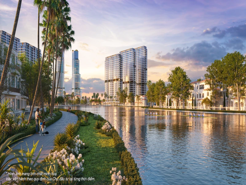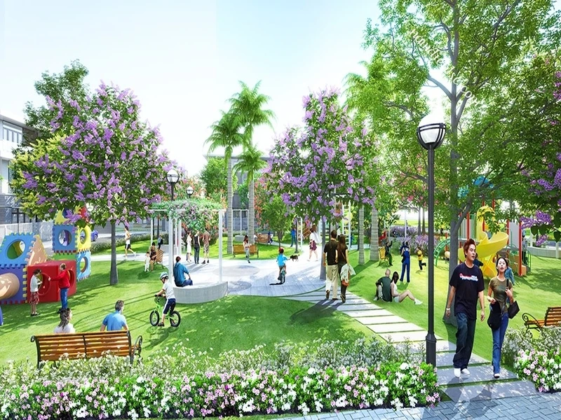 - Công viên trung tâm, quảng trường nước, đường dạo bộ ven hồ: nơi kết nối cộng đồng và thư giãn sau mỗi ngày làm việc.